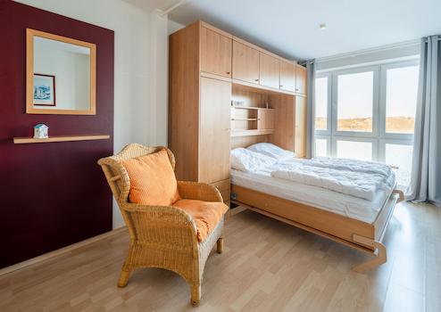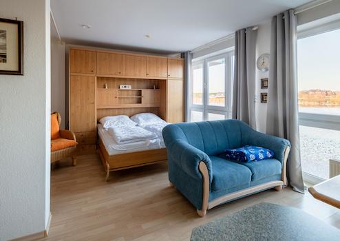 Deichblick und Forellensee-Panorama: renoviertes 1-Zimmer-Apartment auf Nordstrand.