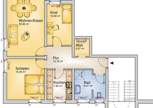 Herzstück ist der Wohnbereich mit Zugang zum Balkon – ideal für den Feierabend, einen Kaffee am Morgen oder einfach etwas frische Luft mit Ausblick. Neben dem Wohnzimmer stehen zwei weitere gut nutzbare Zimmer zur Verfügung, die sich flexibel als Schlafzimmer, Kinderzimmer oder Homeoffice gestalten lassen. Ein praktischer Zuschnitt sorgt für gute Möblierbarkeit und kurze Wege.