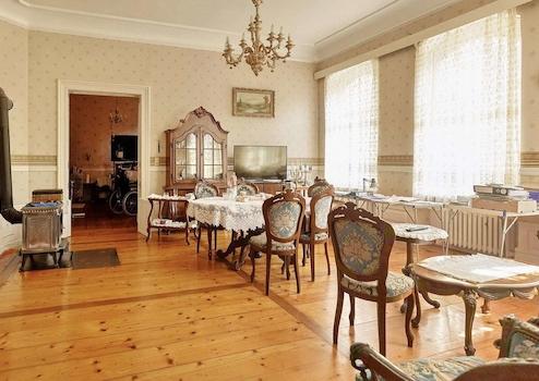 Im Inneren entfaltet das Haus seine ganze Größe: Auf rund 523 m² Wohnfläche öffnen sich weitläufige Räume, deren historische Seele durch die letzte umfassende Modernisierung im Jahr 2014 neu erweckt wurde. Hohe Decken, feine Details, handverlesene Materialien und zahlreiche erhaltene Originalelemente schaffen ein Ambiente, das gleichermaßen einlädt, inspiriert und verzaubert. Mindestens sechs Schlafzimmer und drei außergewöhnlich gestaltete Badezimmer bieten großzügigen Raum für Mehrfamilien- oder repräsentatives Wohnen. Jede Etage wirkt wie ein eigenes Kapitel – voller Licht, Atmosphäre und besonderer Momente.