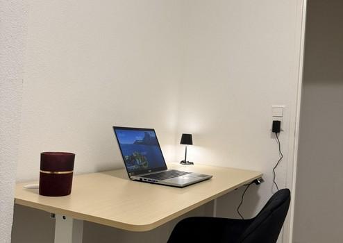höhenverstellbarer Schreibtisch mit Stuhl