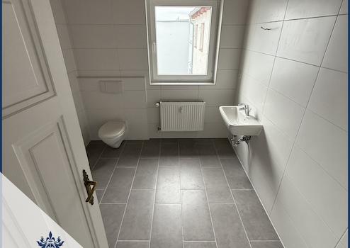 Das vollständig renovierte Badezimmer begeistert mit hochwertiger Ausstattung, modernen Armaturen und einer ansprechenden Gestaltung. Hier wurde besonderer Wert auf zeitloses Design und hohen Komfort gelegt.