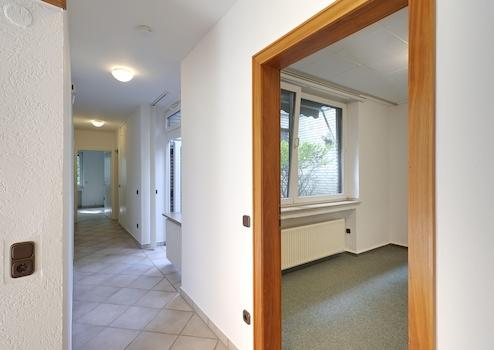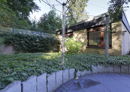 Das Haus ist komplett eingefriedet, am Ende einer Fußgängerstraße in direkter Umgebung von weiteren Bungalows, angrenzend an einem kleinen Park und ist durch die Bäume uneinsehbar. Für Ihre Fahrzeuge und Fahrräder stehen 2 Garagen mit elektrisch betriebenen Sektionaltoren zur Verfügung.