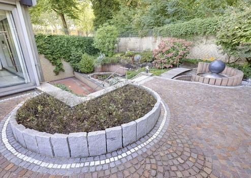 Das aufwändig angelegte Grundstück und die durchdachte Raumaufteilung machen diese Immobilie zu einem idealen Zuhause für Familien oder anspruchsvolle Paare mit dem Wunsch nach Privatsphäre, Ruhe und Gestaltungsfreiheit. Der Außenbereich ist mit mehreren Terrassen ausgestattet, so dass Sie immer einen Schatten- oder Sonnenplatz finden. Die Pflanzen, der Teich und das Wasserspiel sind über verschiedene Höhen angelegt. Der gesamte Garten und auch der Vorgarten verfügt über eine elektronische gesteuerte Sprenkleranlage mit Brunnenwasser, so dass Sie sich um die Bewässerung nicht kümmern müssen.