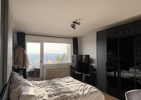 Die Wohnung befindet sich in der 8. Etage eines Mehrfamilienhauses und ist sowohl über das Treppenhaus als auch über einen Aufzug erreichbar. Sie bietet einen unverbauten Süd-West-Blick. Die Wohnfläche beträgt ca. 66 m² inklusive anteiligem Balkon, zuzüglich eines separaten Kellerabteils. Im Jahr 2023 wurde die Wohnung umfassend modernisiert. In diesem Zuge erfolgten die Erneuerung der Elektrik, die vollständige Modernisierung des Badezimmers sowie der Einbau einer neuen Einbauküche. Zwischen Wohnzimmer und Küche wurde ein Durchbruch geschaffen, um einen offenen, hellen und modernen Grundriss zu realisieren. Sämtliche Wände und Decken wurden von Holzverkleidungen und Reibeputz befreit und mit Feinputz versehen. Zudem wurde ein durchdachtes Lichtkonzept umgesetzt. In der Abstellkammer wurde ein Waschmaschinenanschluss installiert. Das Wohnzimmer sowie das Schlafzimmer verfügen über große Fenster-Türelemente in Süd-West-Ausrichtung mit direktem Zugang zum Balkon. Dadurch sind beide Räume besonders hell und lichtdurchflutet. Das Wohnzimmer ist zusätzlich mit einer abgehängten Decke mit indirekter Deckenbeleuchtung ausgestattet, die eine moderne und angenehme Wohnatmosphäre schafft. Die Einbauküche wurde 2023 neu eingebaut und ist funktional sowie optisch auf den offenen Wohn- und Essbereich abgestimmt. Durch die großen Fensterfronten steht jederzeit viel Tageslicht zur Verfügung. Das Badezimmer ist modern ausgestattet und verfügt über eine Dusche mit Kopf- und Handbrause, einen Waschtisch, ein WC sowie einen Design-Badheizkörper. Badezimmer, Schlafzimmer, Wohnzimmer und Abstellkammer sind über einen geräumigen Flur erreichbar, der ausreichend Platz für eine Garderobe, einen Schuhschrank oder eine Ankleidelösung bietet. Alternativ zum Waschmaschinenanschluss in der Abstellkammer stehen auch Waschmöglichkeiten im Keller zur Verfügung. In Wohnzimmer, Schlafzimmer und Flur liegt restauriertes Echtholzparkett. Küche, Badezimmer und Abstellkammer sind mit Fliesen ausgestattet. Insgesamt überzeugt die Wohnung durch eine durchdachte Raumaufteilung, helle Wohnräume und einen modernen, zeitlosen Ausstattungsstandard.