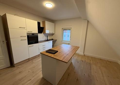 Die lichtdurchflutete Wohnung überzeugt durch ihren offenen Grundriss sowie einen großzügigen Balkon im Dachgeschoss, der zum Entspannen einlädt. Eine Einbauküche ist vorhanden und im Mietpreis enthalten.