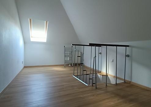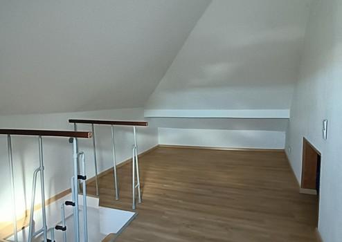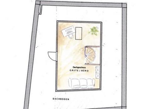 Über eine Wendeltreppe gelangen Sie in das Obergeschoss, das sich ideal als Büro, Gäste- oder Hobbyraum eignet. Ein zusätzlicher Spitzboden steht Ihnen exklusiv zur Verfügung und bietet praktischen Stauraum oder weitere Nutzungsmöglichkeiten.
