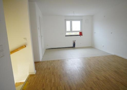 Erdgeschoss: Der offene Wohn-/Essbereich (ca. 36 m²) ist das Herzstück mit Zugang zur Terrasse und dem eigenen Garten. Dieser bietet überschaubaren Platz zur freien Gestaltung, ohne arbeitsintensiv zu sein. Ein offener Küchenbereich (ohne EBK), Diele und Gäste-WC runden die Etage ab. Elektrische Rollläden zum Garten.