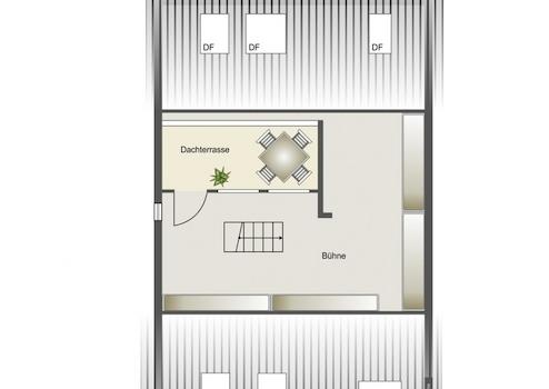 Ein besonderes Highlight ist die Dachterrasse im oberen Stockwerk mit schönem Blick auf die Heilbronner Weinberge.