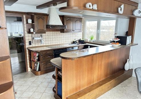 Balkon, Terrasse, Garten, Keller, Vollbad, Einbauküche, Gäste-WC, Parkett, Fliesen