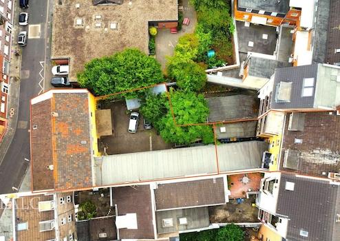 3.) Wohn- und Geschäftshaus in der Marienstraße (Parallelstraße zur Venloer Straße). Im EG befindet sich eine derzeit nicht genutzte Gewerbeeinheit mit ca. 48 m², darunter ein schöner Gewölbekeller mit ca. 90m². Die Wohnung im 1. OG (ca. 128m²) steht leer und ist sanierungsbedürftig. Der darüber liegenden Dachboden (Grundfläche ohne Schrägenabzug ca. 145m²) kann ausgebaut werden. Die Immobilie verfügt über drei Außenstellplätze im Hofbereich. Last not least gibt es dort auch eine sehr gemütliche und überdachte Terrasse.