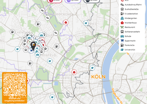 Die verkehrstechnische Anbindung ist hervorragend: Die Haltestelle “Piusstraße” der Linien 3 und 4 befindet sich nur rund 100 Meter entfernt und verbindet Ehrenfeld direkt mit der Innenstadt, dem Neumarkt oder Deutz. Der Bahnhof Köln-Ehrenfeld ist ebenfalls in wenigen Minuten erreichbar und bietet Anschluss an den Regional- und S-Bahn-Verkehr.