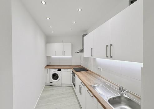 - Neuwertige voll ausgestattete Küchenzeile mit Herd, Kochfeld, Kühlschrank, Waschtrockner und Spülmaschine