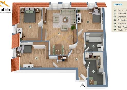 Entdecken Sie Ihre zukünftige Mietwohnung: eine charmante Etagenwohnung im 1. Obergeschoss eines gepflegten Mehrfamilienhauses. Diese 4-Zimmer-Wohnung mit einer Wohnfläche von 103,5 m² bietet Ihnen ausreichend Platz für die ganze Familie.