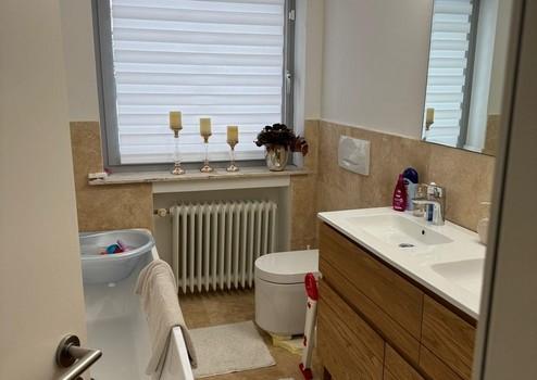 In einer ruhigen Seitenstrasse eines großzügigen Einfamilienhauswohngebiets und in Waldnähe liegt diese 5-Zimmer-Wohnung im Erdgeschoss eines Zweifamilienhauses.