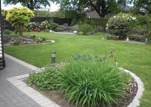 Wie das gesamte Angebot präsentiert sich auch der Garten perfekt gepflegt.