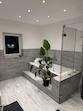 Tageslichbad mit bodentiefer Dusche und Whirlpool Badewanne