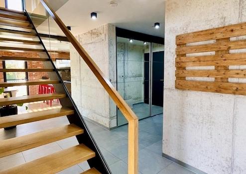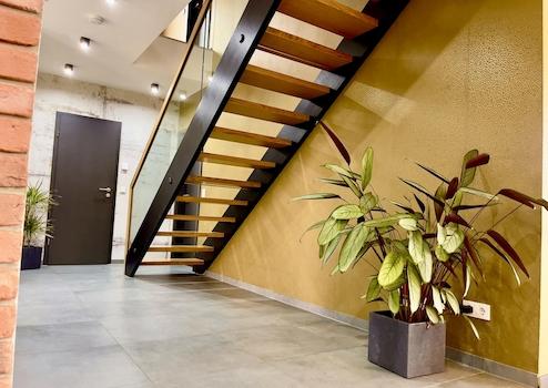 - Massive Eichentreppe mit Glasgeländer