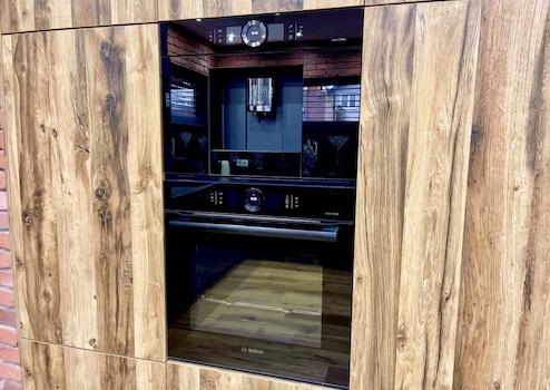 - BOSCH Geräte (Serie 8, energieeffizient) Einbau-Kaffeevollautomat, Backoffen, Mikrowelle, Große Spülmaschine, Kühlschrank