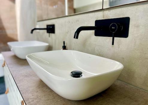 - Doppelwaschtisch mit Designarmaturen