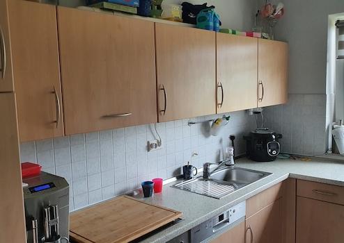 - Eine komplett ausgerüstete Küche mit ausreichend Raum für einen Essplatz