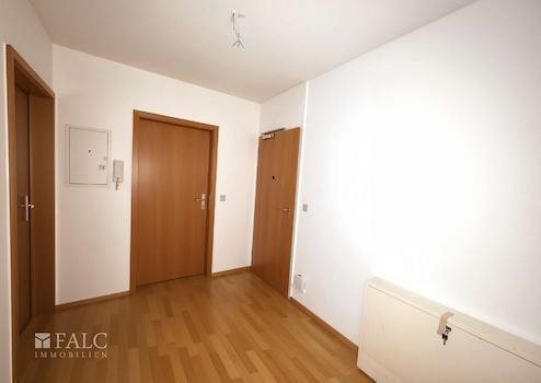Sie betreten die Wohnung über einen gut geschnittenen Flur mit Laminatboden und weißen Wänden. Hier ist Platz für Garderobe, Schuhschrank und Kinderwagen, ohne dass es eng wirkt. Von hier aus sind alle Räume bequem erreichbar.