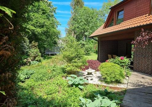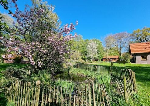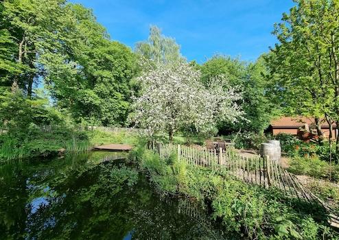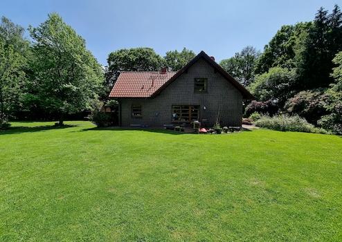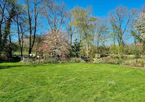 Das großzügige Grundstück mit einer Fläche von 4.487 m² grenzt teilweise an ein artenreiches Landschaftsschutzgebiet und ermöglicht einen freien Blick ins Grüne sowie ein hohes Maß an Ruhe und Privatsphäre.