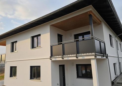 Alu-Kunststofffenster, Aluminium Haustüre, dezentrale Lüftungsanlage, hochwertige Einbauküche, schöne Außenanlagen, Terrasse, große Fensterelemente, moderne Ausstattung