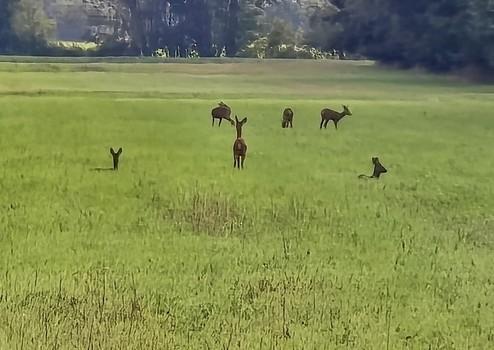 Das Grundstück ist lediglich auf einer Seite angrenzend bebaut, hinten und rechts öffnet sich der Blick ins Grüne - ein außergewöhnliches Maß an Ruhe, Privatsphäre und Naturblick.