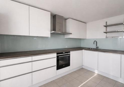Auf der unteren Ebene befinden sich ein großzügiger Wohn- und Essbereich, eine offen gestaltete Einbauküche mit Markengeräten, ein Badezimmer sowie ein Schlafzimmer. Die Küche ist im Kaufpreis enthalten und verfügt über eine komfortable Arbeitsflächenhöhe von 103 cm.
