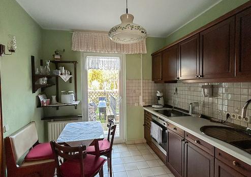 Im Erdgeschoss empfängt Sie eine Diele mit Gäste-WC sowie Zugang zum Keller und zur oberen Etage. Das helle Wohn- und Esszimmer mit angrenzender Küche bietet direkten Ausgang sowohl in den Garten als auch auf die überdachte Terrasse.