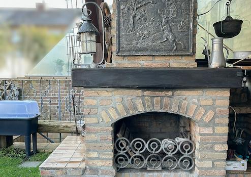 Die überdachte Terrasse im Garten ist mit Holz und Doppelstegplatten gestaltet und verfügt über einen Ofen/Grill, der für gemütliche Stunden sorgt. Der Garten ist vollständig eingefriedet und bietet Privatsphäre und Sicherheit.