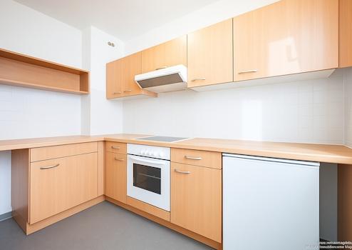 Die Küche ist kompakt und funktional geschnitten und mit einer zeitlosen Einbauküche ausgestattet. Ober- und Unterschränke, Kochfeld, Backofen, Dunstabzug sowie ein Geschirrspüler bieten alles für den täglichen Bedarf. Vom Wohnbereich aus gelangen Sie auf den ca. 3,66 m² großen Balkon – perfekt für den Morgenkaffee oder ein Glas Wein am Abend.