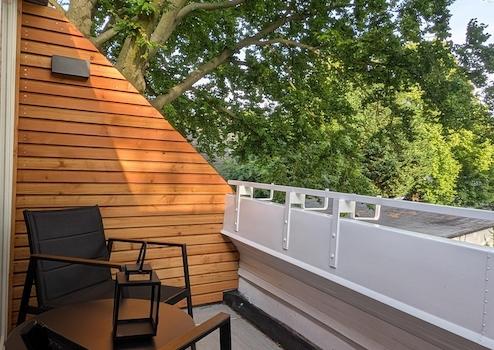 - Balkon mit neuem Bodenbelag und gemütlichen Holzaspekten