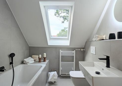 - zwei hochwertig sanierte Bäder (Duschbad en suite und Vollbad)