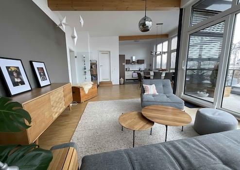 Die hier angebotene Maisonette-Penthouse-Wohnung liegt in einem jungen Mehrfamilienhaus und ist über den vorhandenen Aufzug oder das Treppenhaus zu erreichen. Die geräumige 2-Zimmer-Wohnung weiß vor allem mit ihrer Helligkeit zu überzeugen, die Dank der großen Fensterflächen auf der Süd- und Westseite gegeben ist.