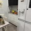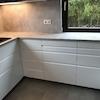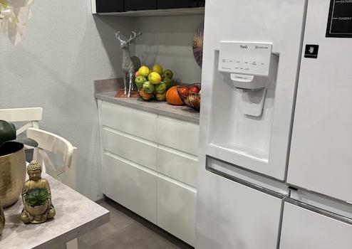 Die moderne, hochglänzende Einbauküche ist mit Induktionskochfeld und integriertem Abluftsystem, Dampfgar-Backofen und Side-by-Side-Kühlschrank ausgestattet und im Kaufpreis enthalten (Möblierung nach Vereinbarung).