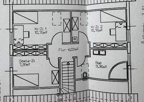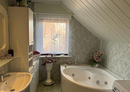 • Obergeschoss: Badewanne, Doppelwaschbecken, WC