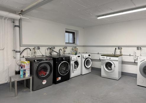 Zur Wohnung gehört ein eigener Kellerraum. Waschmaschine und Trockner finden ihren Platz im gemeinschaftlichen Waschkeller.