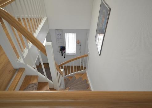 Eine Gas-Zentral-Heizung erwärmt das Haus über eine Fußbodenheizung in jeder Etage und in jedem Raum. Die 3-fach verglasten Fenster bieten viel Schutz vor Kälte und dennoch sind alle Zimmer aufgrund der Größe der Fenster lichtdurchflutet. Drei zusätzliche Veluxfenster mit elektrischen Außenrollläden bringen ebenso sehr viel Licht in das obere Geschoss.