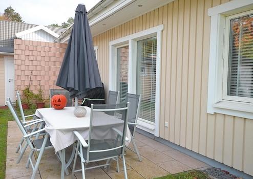 Die Terrasse ist absolut perfekt zum Sonnenbaden und blickdicht. Das Haus wurde so errichtet, dass die wichtigsten Räume immer viel Lichteinfall haben.