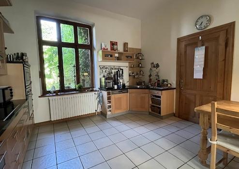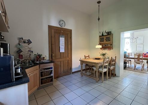 Im Erdgeschoss befinden sich eine Diele, eine geräumige Küche, ein Esszimmer (auch als Wohnzimmer nutzbar), ein Gäste-WC sowie ein Gästezimmer mit eigenem Bad im rückwärtigen Anbau.