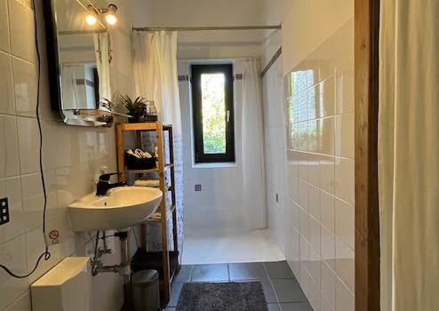 Zusätzlich gibt es im Zwischengeschoss ein Wannenbad sowie ein separates WC.