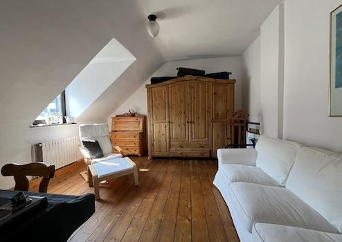 Das Dachgeschoss bietet drei Schlafräume (einer davon ein Durchgangszimmer), ein Wannenbad und ein separates WC. Der Dachboden bietet lediglich Abstellfläche.