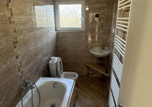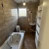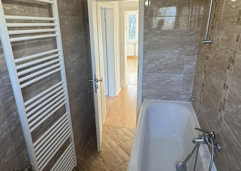 Das Badezimmer ist funktional und mit einer Duschwanne ausgestattet.