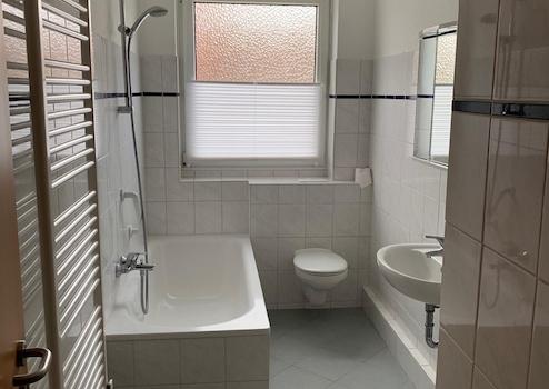 Die Wohnung ist hell und freundlich - das Badezimmer mit Badewanne und einem großen Fenster bietet die Möglichkeit eine eigene Waschmaschine zu stellen.