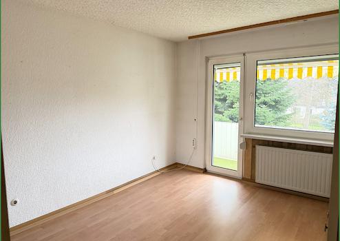 Auf einer Wohnfläche von ca. 60 m² verteilen sich vom Flur aus die einzelnen Räume. Das Wohn,- und Esszimmer verfügt über einen Balkon mit Markise und Südausrichtung, mit Blick ins Grüne.