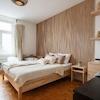 Im Erdgeschoss befindet sich eine geräumige Zweizimmerwohnung mit einem sehr großen Wohn- und Essbereich, einem großen Schlafzimmer, Küche mit Sitzgelegenheit und Zugang zum Hof, Badezimmer, Gäste-WC und Abstellraum. Die beiden weiteren Zweizimmerwohnungen im Ober- und Dachgeschoss bieten einen ähnlichen Grundriss mit Wohnzimmer, Schlafzimmer, Küche, Bad und Abstellräumen.