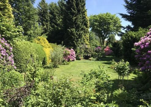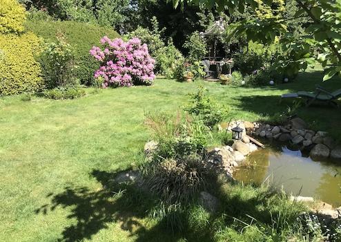 Malerischer großer Garten mit Teich
