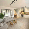 Moderner Wohn-/Essbereich: Das Herzstück der Wohnung ist die großzügige Wohnküche mit angrenzendem Essbereich. Das Design-Fenster in Schwarzstahl-Optik sorgt für ein loftartiges Ambiente und verbindet die Räume optisch auf elegante Weise.