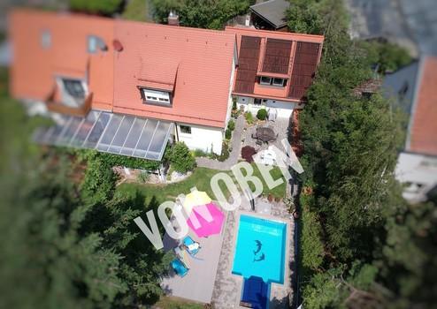 Ein echtes Highlight ist die große, helle Terrasse und Garten mit zahlreichen Sitzmöglichkeiten, die sowohl zum entspannten Verweilen als auch zu geselligen Abenden mit Familie und Freunden einlädt. Der Außenbereich wird durch einen schönen, beheizbaren Pool mit Außendusche ergänzt – ideal für warme Tage und erholsame Stunden im eigenen Zuhause.